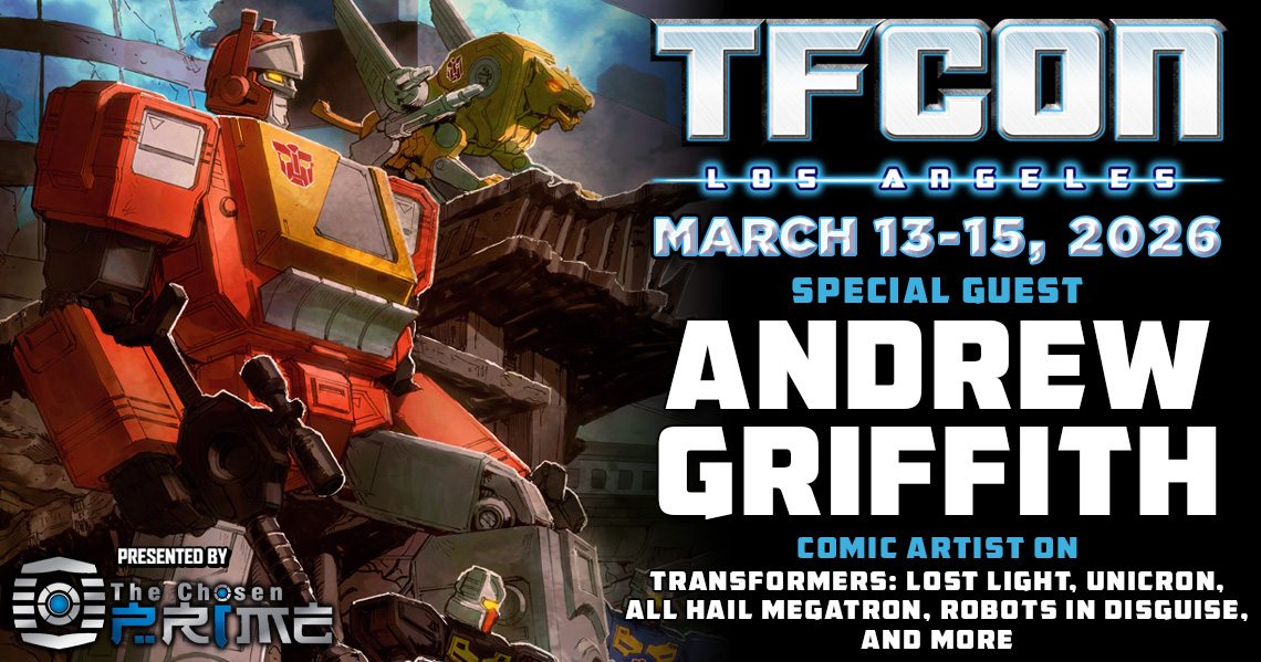TFcon is happy to welcome back Andrew Griffith to TFcon Los Angeles 2025. Andrew is best known to fans as the long-time artist on IDW’s ongoing Transformers: Robots in Disguise comic book. He will be signing, selling prints, and offering commissions to attendees all weekend long. Presented by The Chosen Prime.