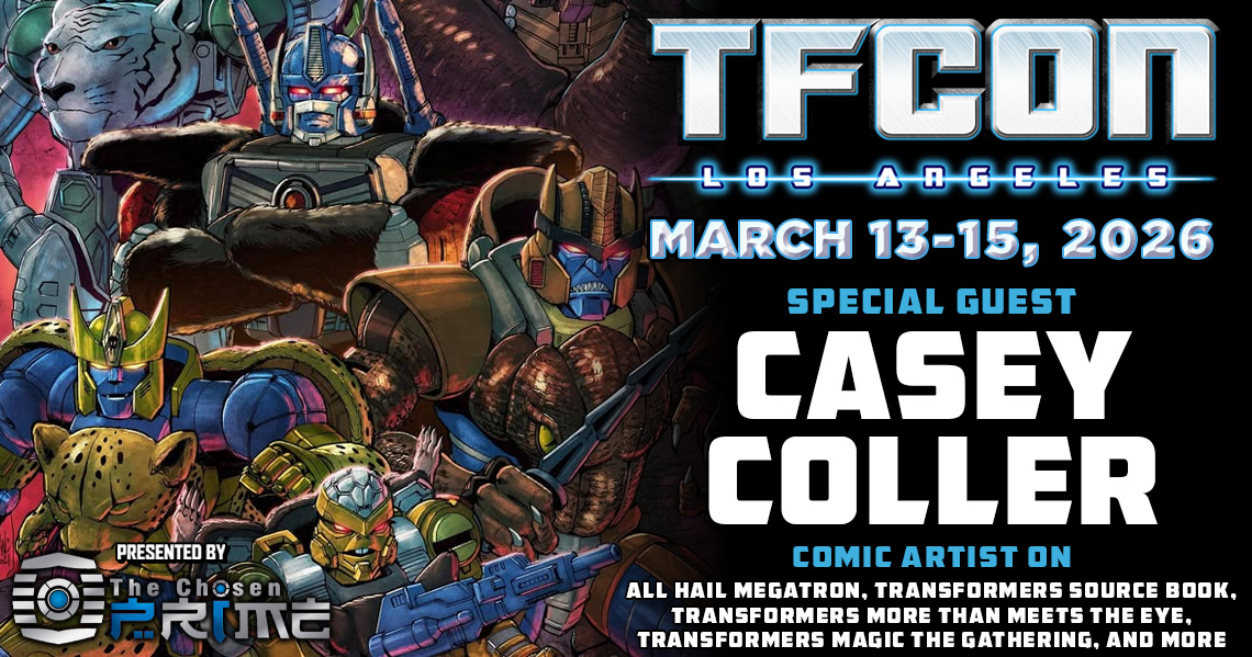 TFcon is very pleased to welcome Casey Coller to TFcon Los Angeles 2026. Casey is known to fans for his work penciling various issues and variant covers for IDW’s Robots In Disguise, More Than Meets the Eye, Optimus Prime, and Lost Light comics as well as many other one-shot issues. He will be selling prints and offering commissions to attendees all weekend long. Presented by The Chosen Prime.