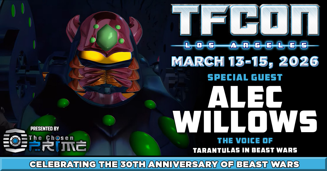 TFcon is very happy to welcome Alec Willows the voice of Tarantulas in Beast Wars as a guest at TFcon Los Angeles 2026 for the Beast Wars Reunion.