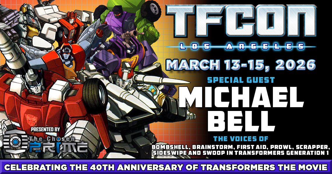 Michael will participate in a Q&A panel and autograph session with the attendees of America’s Ultimate Transformers Fan Experience. Please check the TFcon website for the full guest signing schedule prior to the event for exact times. Michael Bell is presented by The Chosen Prime.